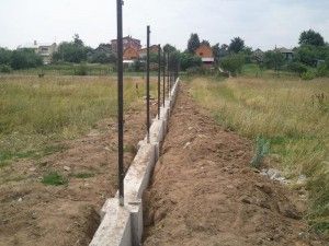 Классическая технология строительства заборов предполагает сложную многоэтапную работу. Вначале по линии периметра будущего забора нужно заложить фундамент, что предполагает рытьё траншеи, опалубку, армирование бетонной конструкции, далее опорные трубы фиксируются и вся конструкция заливается бетоном. Бетону нужно время на высыхание и доведение его до проектной прочности. В дальнейшем установленные опорные трубы обкладываются кирпичом и на них крепятся секции ограждения.